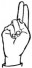 На ћирилици написано МАЈА ТРИКОШАНИН састоји се из 14 слова [?]. Исписано ћириличном једноручном азбуком за глувонеме: